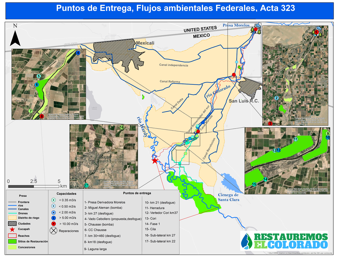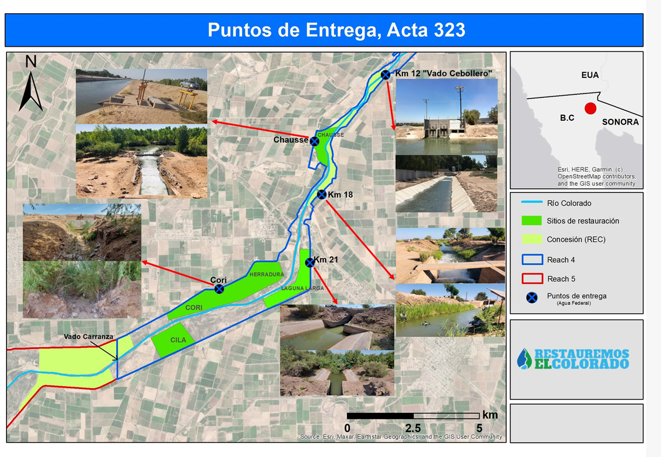 Los volúmenes de agua para estos fines son producto de las negociaciones asentadas en las actas binacionales 319 y 323; esta última, negociada en septiembre de 2017, define cómo los dos países compartirán el agua del río Colorado hasta 2026, en medio de crecientes presiones sobre los recursos hídricos. Es parte de un marco de políticas más amplio del río Colorado que proporciona múltiples beneficios para los usuarios de agua en ambos lados de la frontera y que refuerza los acuerdos del Tratado de 1944, un pacto entre los gobiernos federales de EE. UU. y México.
