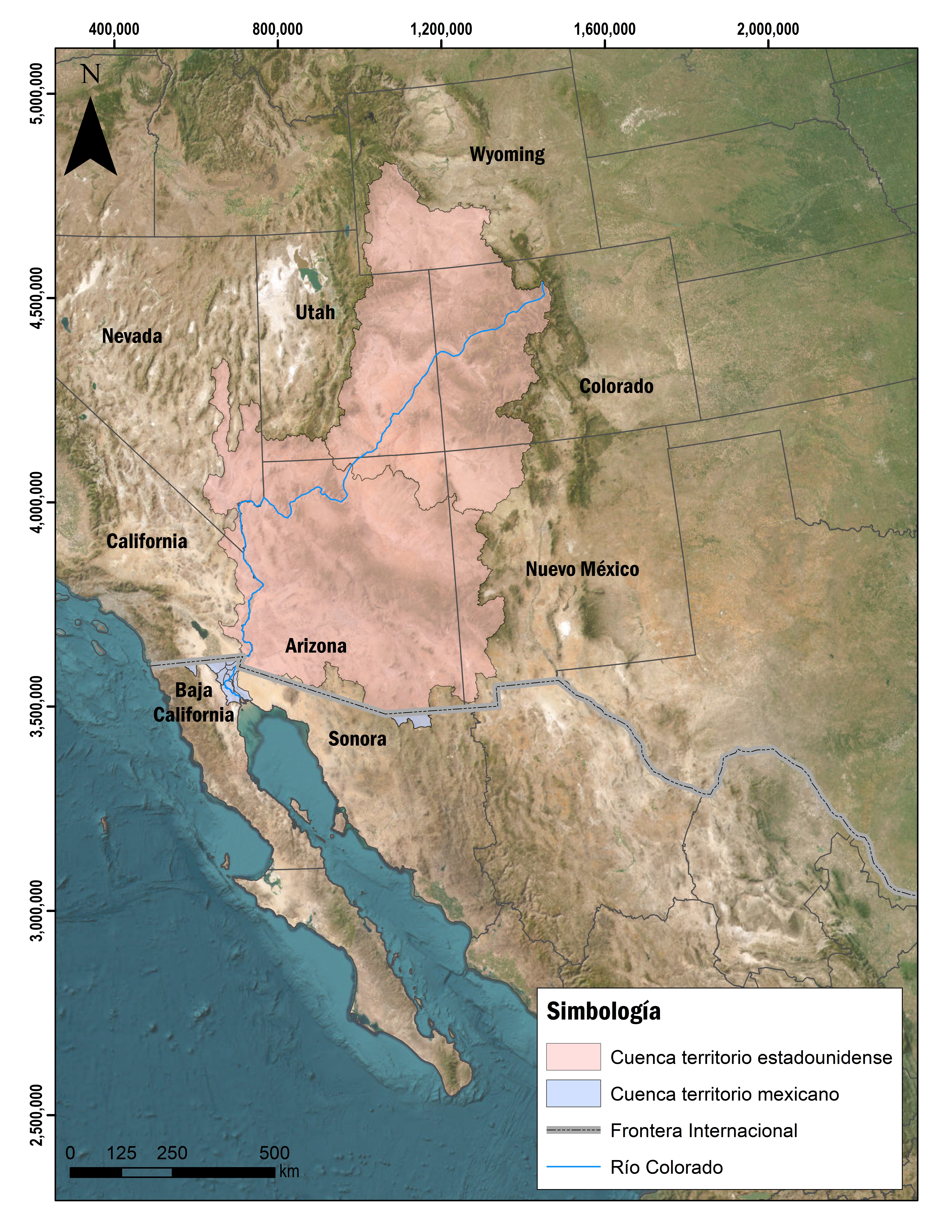 El Río Colorado nace en las montañas rocallosas en Estados Unidos y atraviesa los estados de Wyoming, Colorado, Utah, Nevada, Arizona y Colorado cruza la frontera internacional entre Baja California y Sonora donde se ubica el Delta del Río Colorado. Tiene 2,250 kilómetros de longitud.
